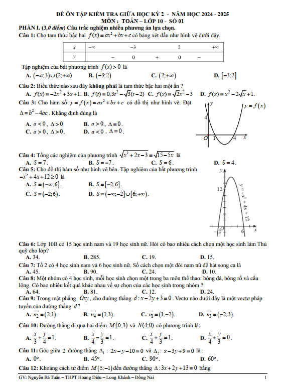 Đề ôn tập kiểm tra giữa kỳ 1 Toán lớp 10 theo định dạng đề 2025 của Bộ